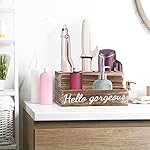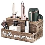 ?【Rustic Style】 A rustic wood grain surface and “Hello Gorgeous” saying in this Hair tools organizer is making you in good mood. This hair dryer organizer makes a stylish addition to your vanity table or bathroom counter top.