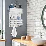 Specification: Y&ME YM Wood Hair Dryer Holder Wall Mount, Bathroom Hair Care and Styling Tool Organizer, Farmhouse Wood Beauty Hair Appliance Holder with Shelf for Bathroom Accessories, Makeup, Toiletries White