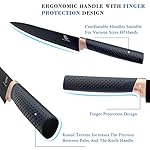【FINGER GUARD & ERGONOMIC HANDLE】The handle has a comfortable non-stick coating and a dot design that increases the friction between the palm and handle.The rose gold hand guards made the knives more beautiful and improve the safety factor of kitchen knives. The chef knife set are easy to clean, they need to be washed with warm water and kept dry after used. The professional sharp cutlery knife set are dishwasher safe, but manual cleaning is recommended to extend their service life.