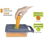 Compact appearance for sparing space, containing much food. Package included: · 14x14mm & 7x7mm Dicer Blade · Ginger Grater Blade · 4mm & 3mm Shred Blade · 2mm Slicer Blade · Waffle Blade · Egg Separator · Drain Basket · Hand Guard